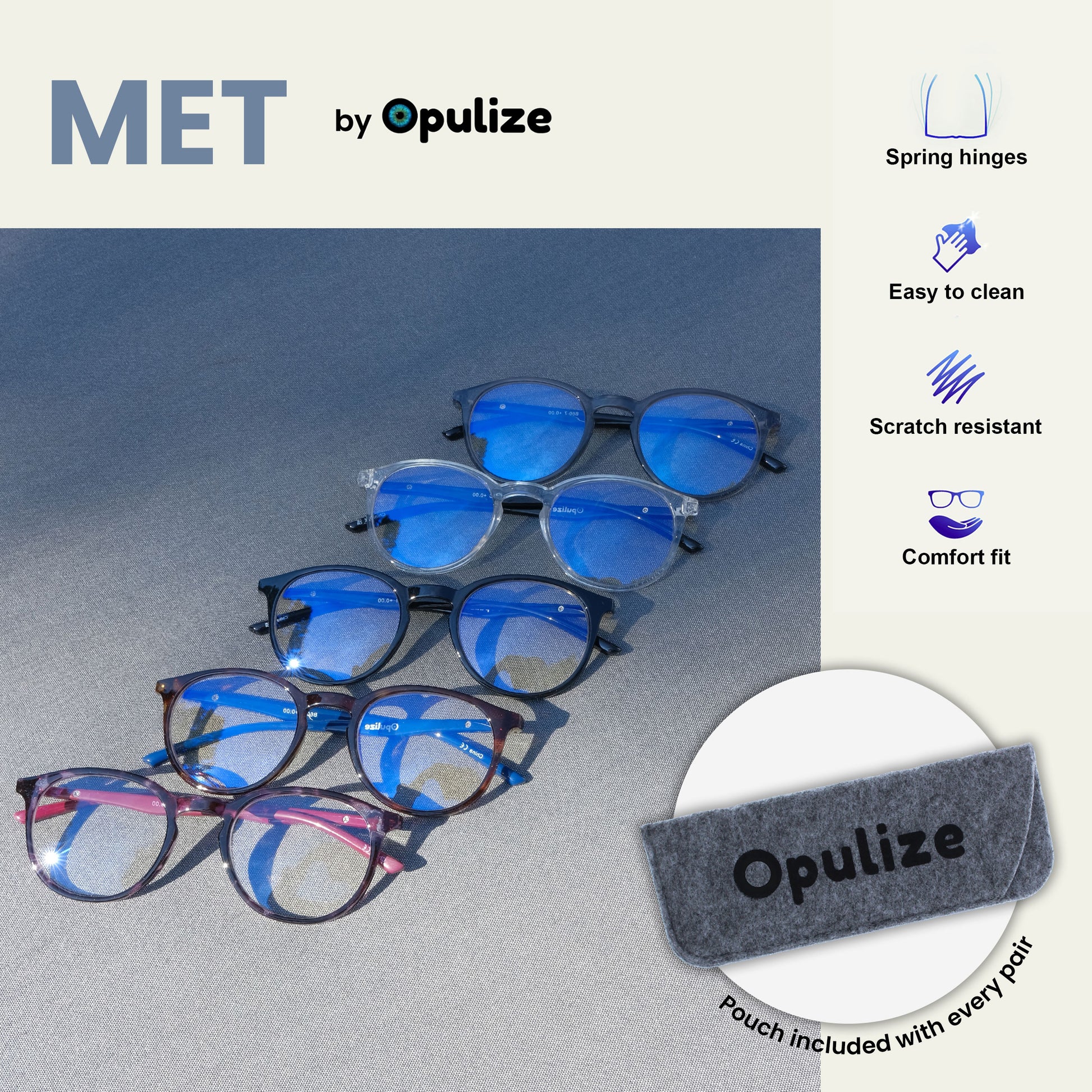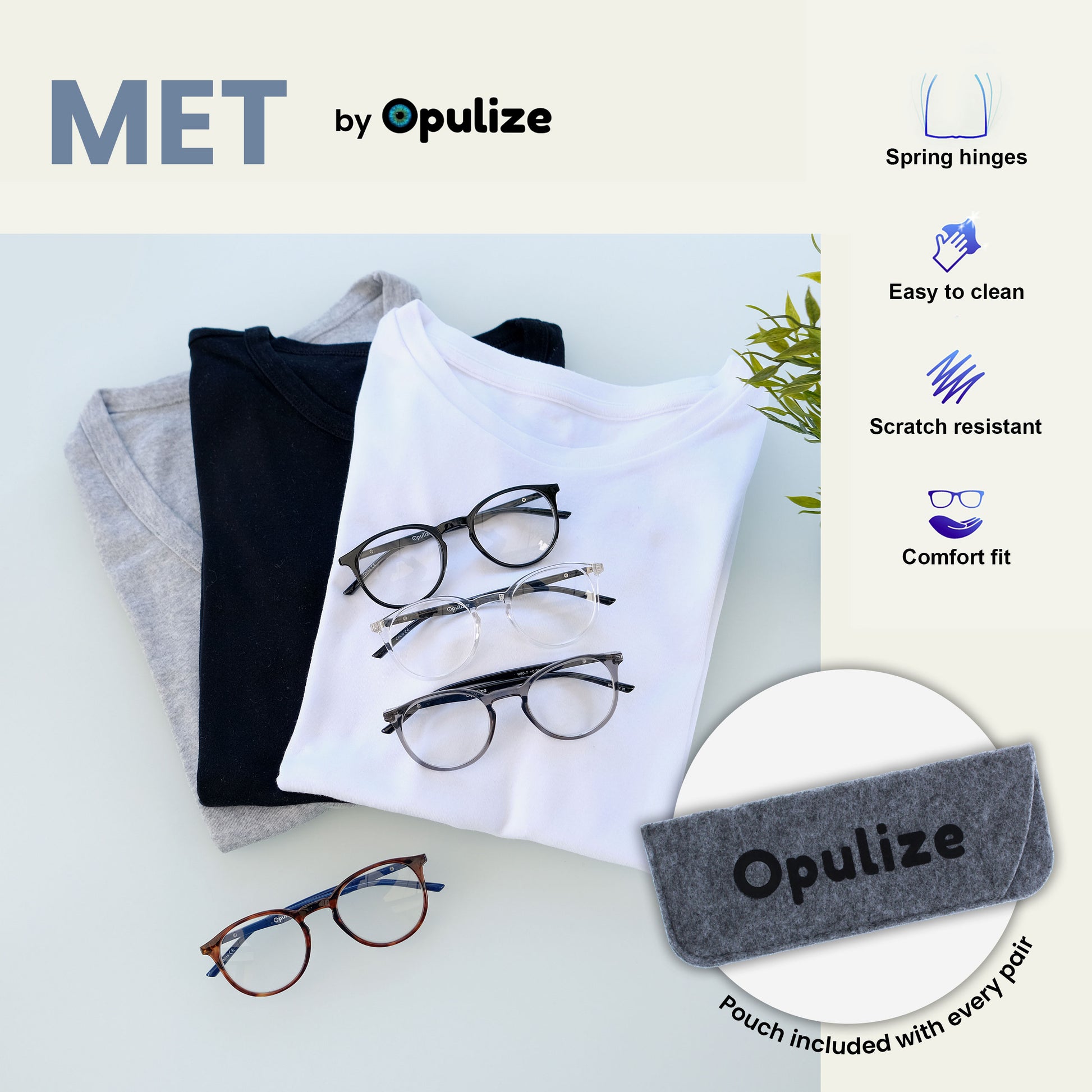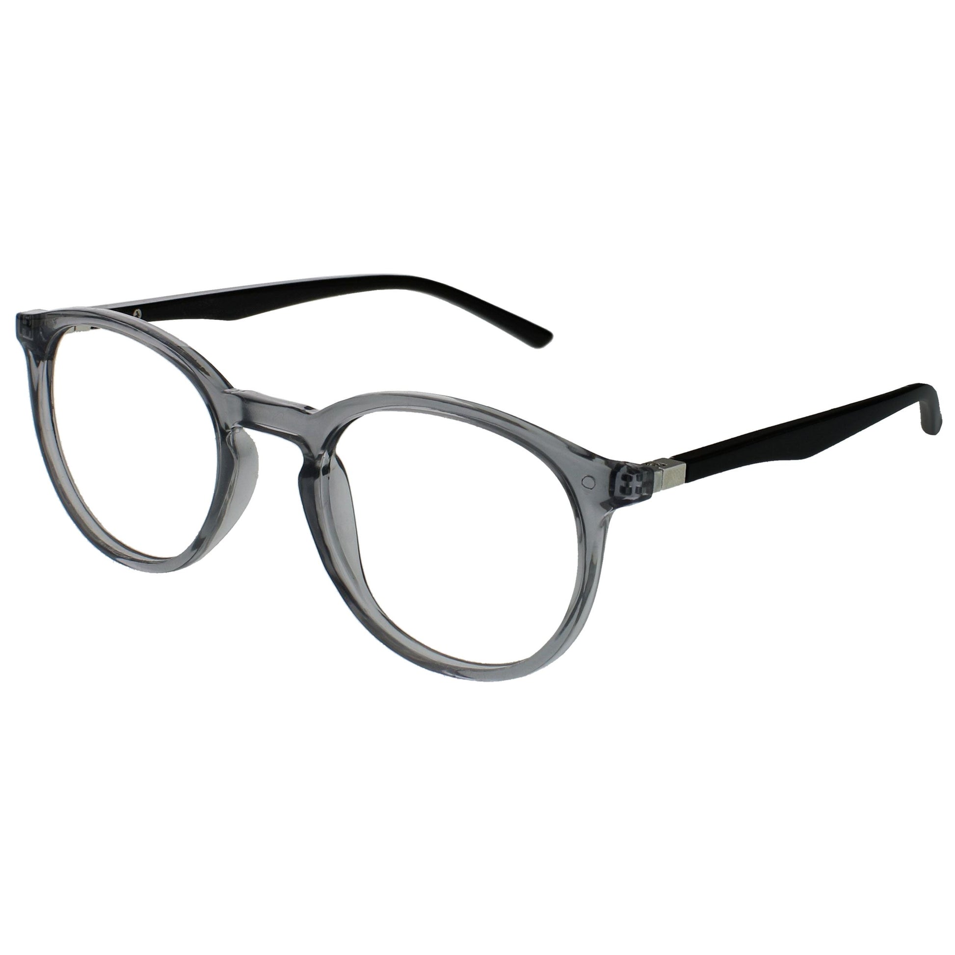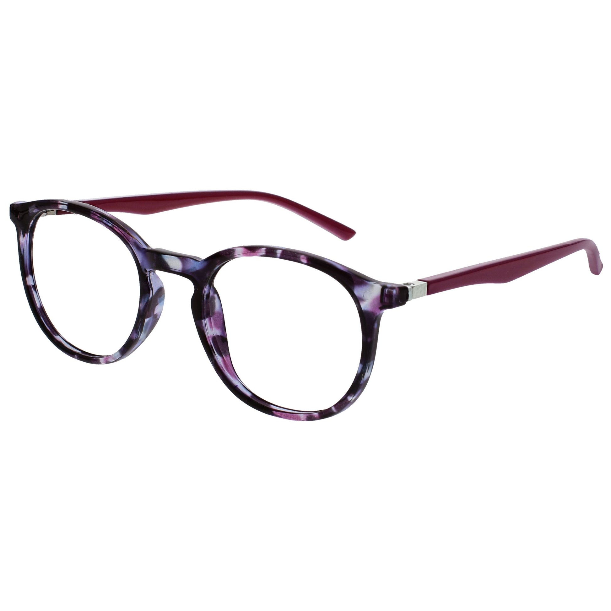 Reading and Blue Light Glasses in this popular stylish thin round frame, in 6 sophisticated colours. Finished with a contrast arm and elegant metal detail. This value 2 pack with scratch-resistant lenses and spring hinges for extra comfort. Unisex. Felt pouches included. Fashion Glasses also available in Zero strength.
